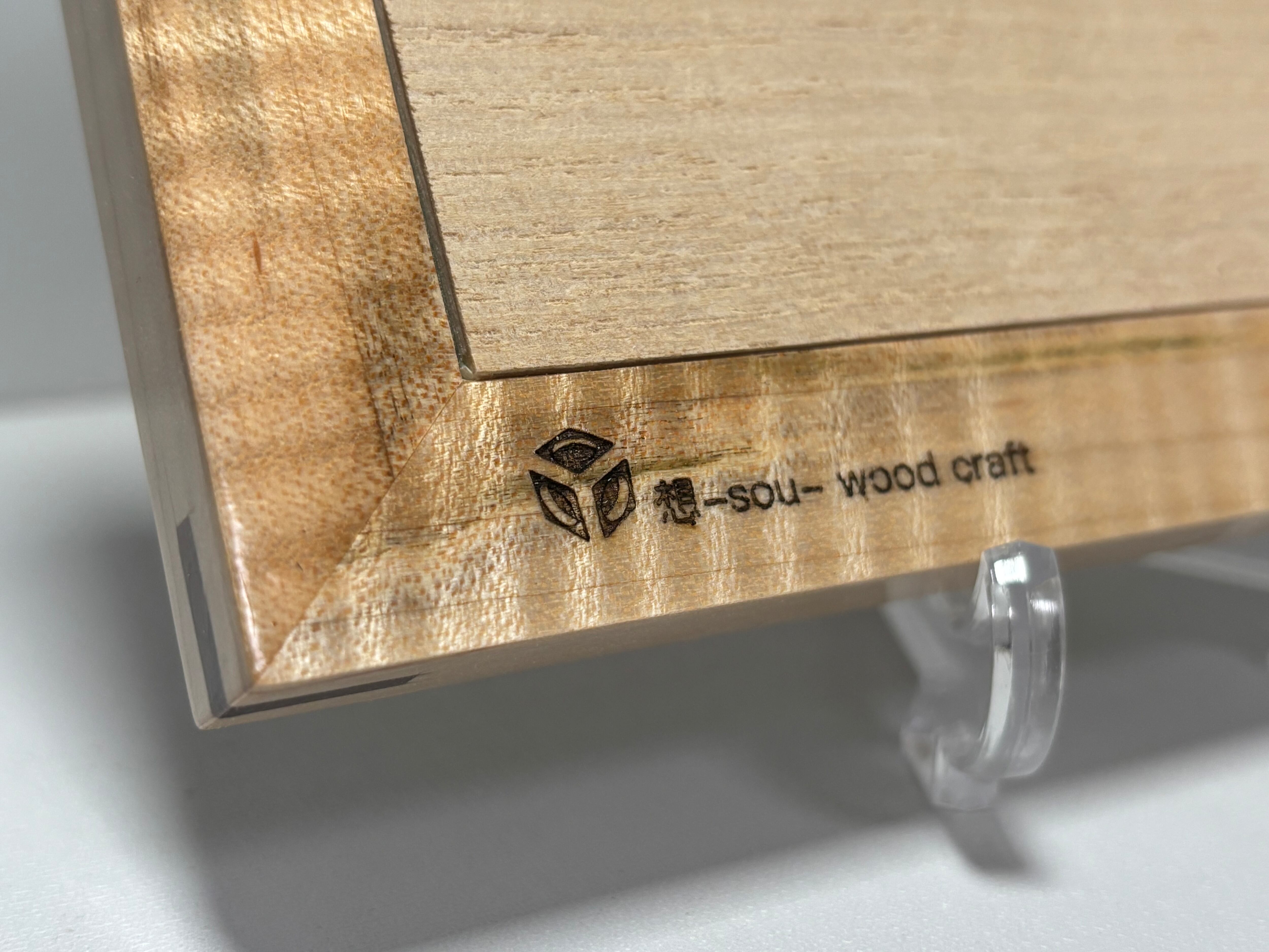 フォトフレーム メイプル縮杢 -02-はシャープなフォルムにクリア塗装を施し、より煌びやかに仕上げました。