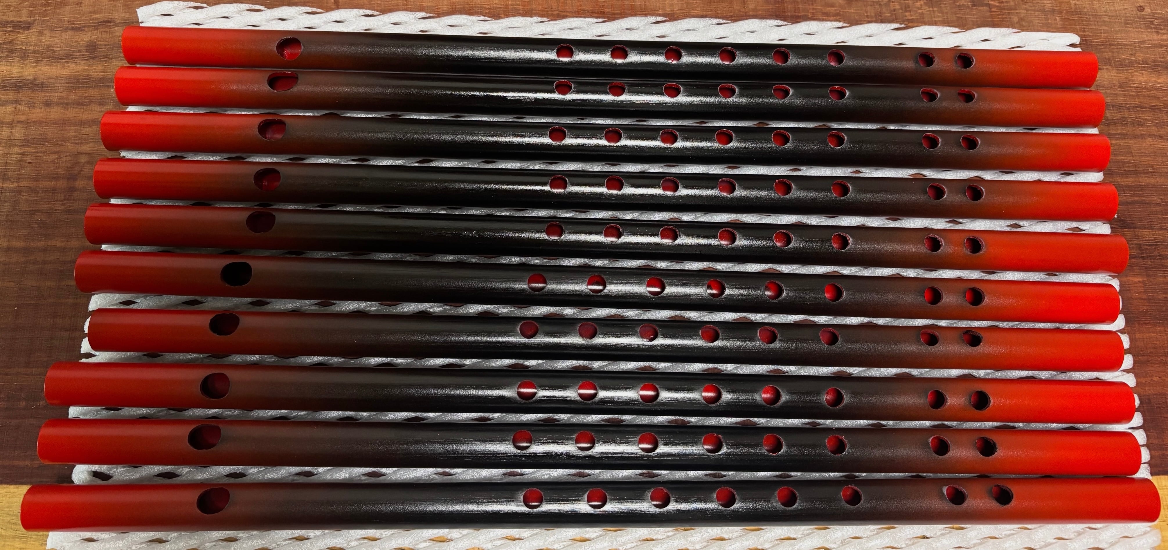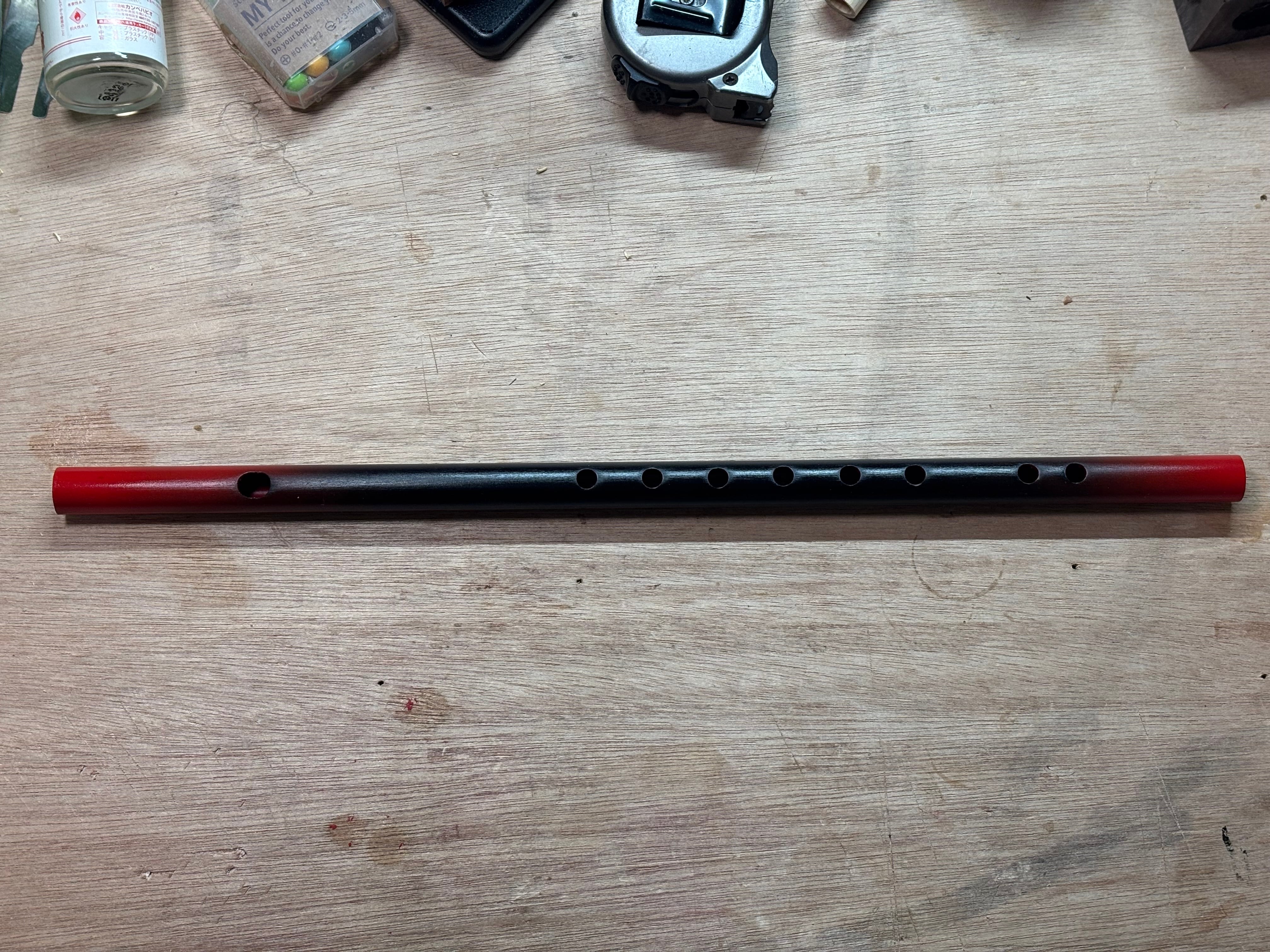 輪島市や能登町のキリコ祭りで使われている明笛をベースに、塩化ビニールパイプにて制作しました。